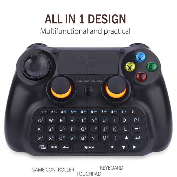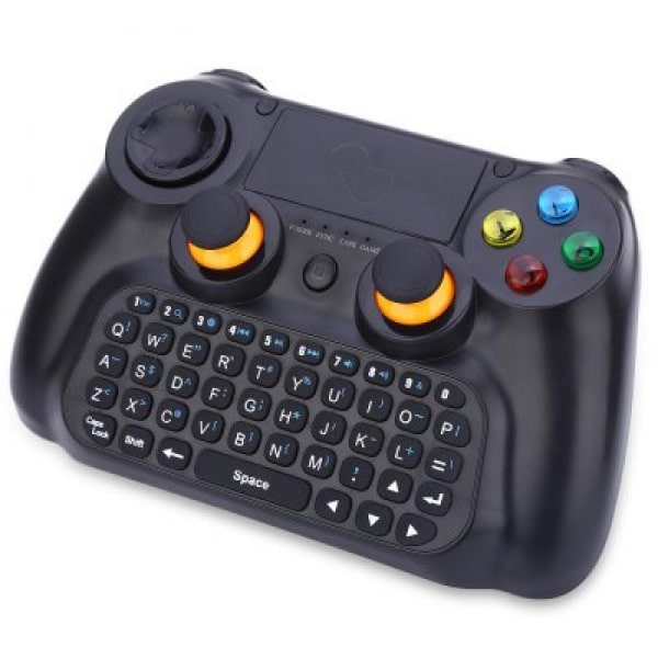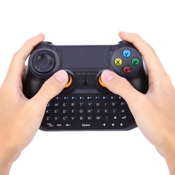 Dalam gamepad ini dilengkapi joystick controller untuk bermain game, touch pad sebagai pengganti mouse serta keyboard untuk mengetik.